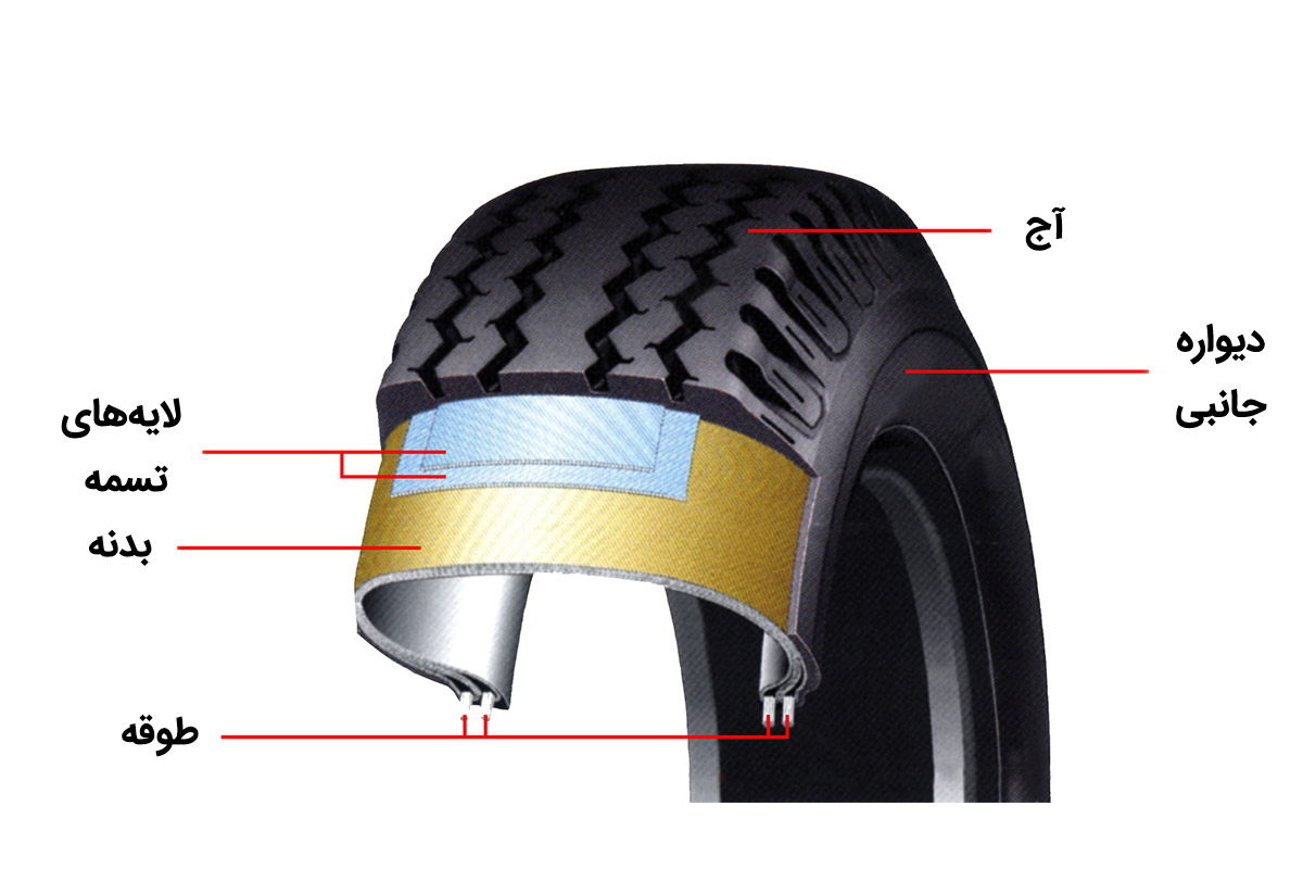 تایر خودرو ساختار لایه ای دارد که از اجزای مختلفی تشکیل شده است که وجود هر یک برای عملکرد صحیح و ایمن آن حیاتی است.